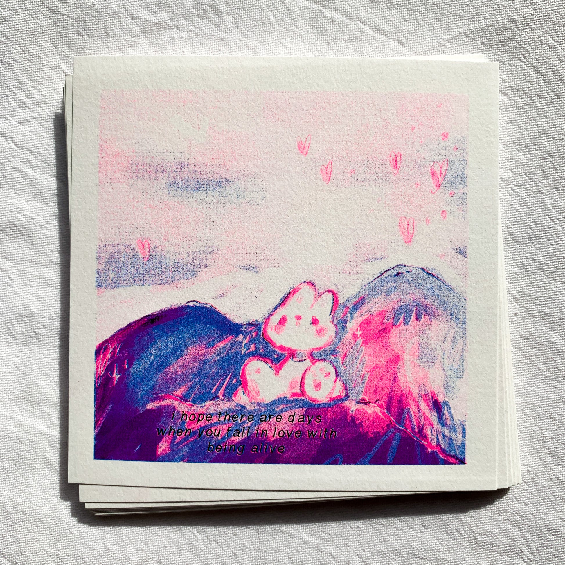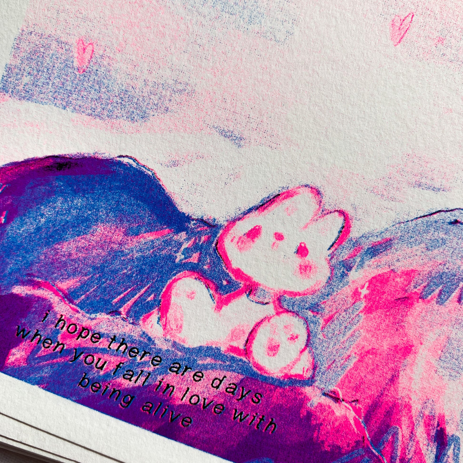 - all prints are slightly different due to riso imperfections (colors line up diffently)
